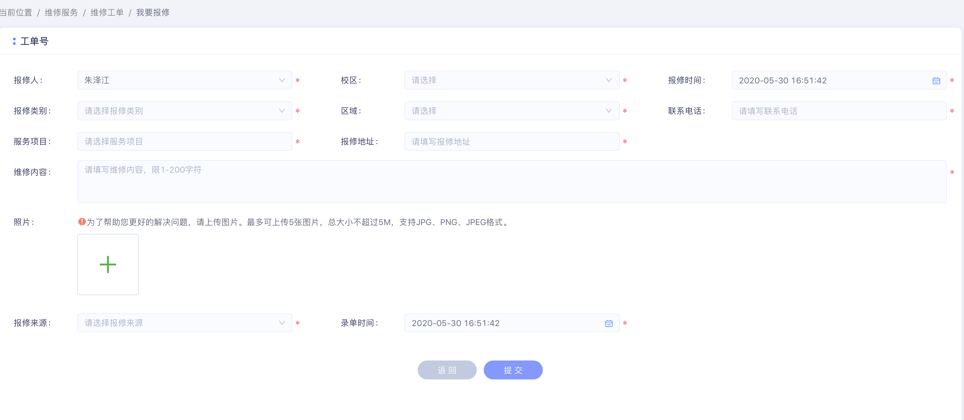 维修服务平台将广外现有维修业务流程信息化,为师生提供线上报修服务。平台极大程度上缩短了报修的时间,并实现维修过程可追溯。学生还可进行自主评价,有效监督服务效率及质量,同时提升了师生满意度。