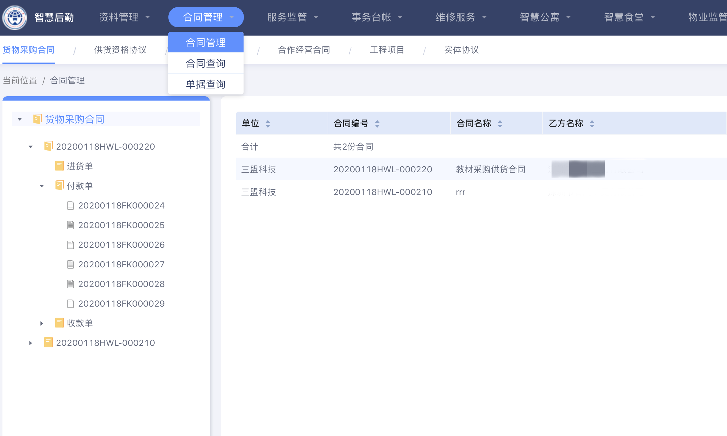 在后勤管理中,合同管理是极易出现疏漏的环节。合同量大,一旦出现审批不及时,容易造成招标延误,服务断档等问题。合同管理平台通过将各类合同及单据进行线上审批,并设置提醒机制保证审批工作快速完成,有效促进合作、付款及收货工作的高效达成。