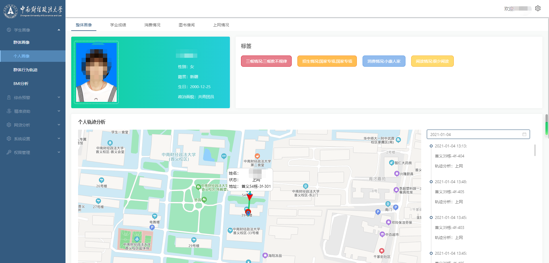 系统通过异常发现算法,提前发现学生失联、未归等异常情况,自动推送预警信息给管理人员。让校方及时采取应对措施,避免意外事故发生,为学生的人身安全保驾护航。